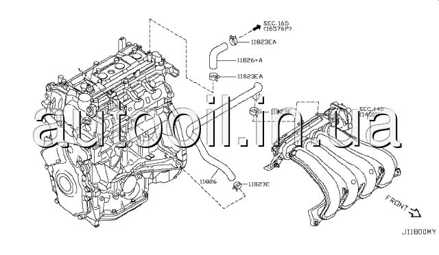 Патрубок радіатора охолодження 11826EN21D NISSAN