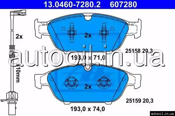 Колодки гальмівні дискові к-кт 13046072802 ATE