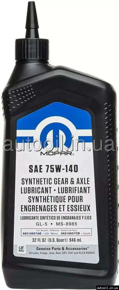 Олива трансмісійна chrysler ms-8985 sint gear & axle 75w-140 gl-5 0946л 68218657AB CHRYSLER