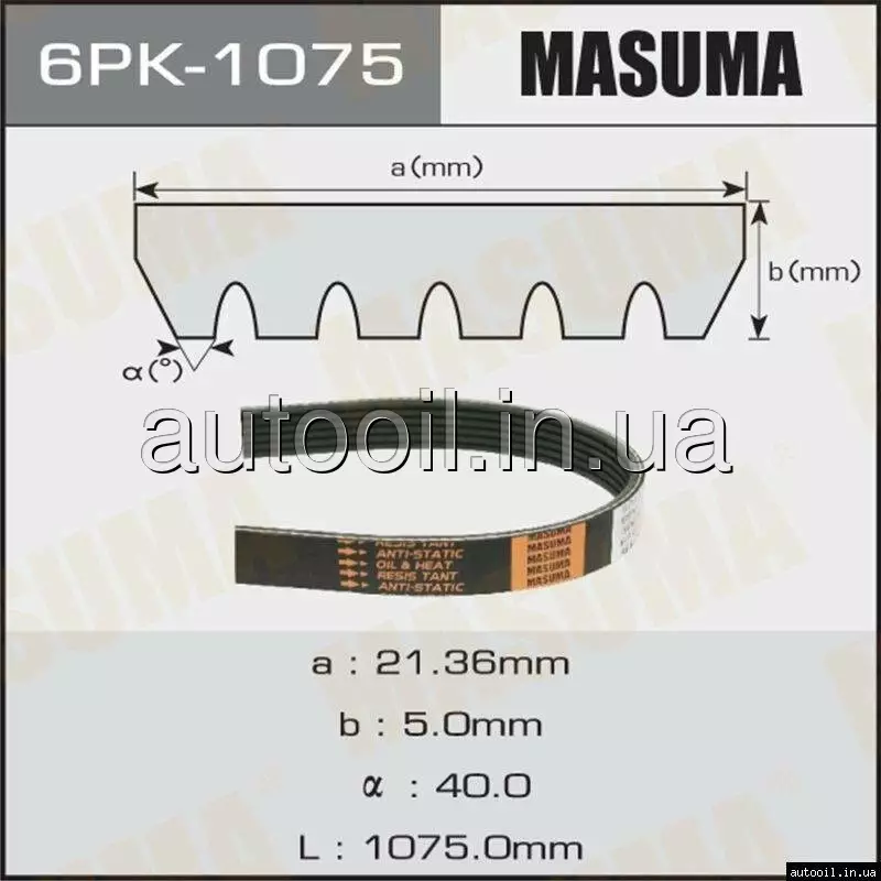 Ремінь поліклінової 6PK-1075 MASUMA 6PK1075 MASUMA