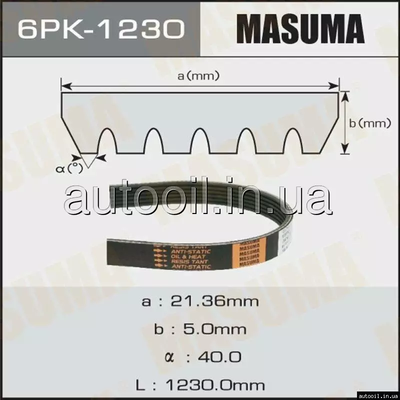 Ремінь поліклінової 6PK-1230 6PK-1230 MASUMA 6PK1230 MASUMA
