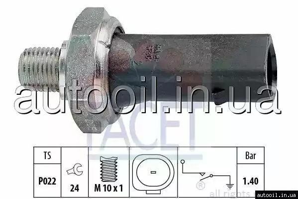 Датчик тиску оливи 12-16bar/ 1 конт./черный VW T4/Golf IV/Audi A4/A6 1.6-5.0 95-10 7.0135 Facet 70135 FACET