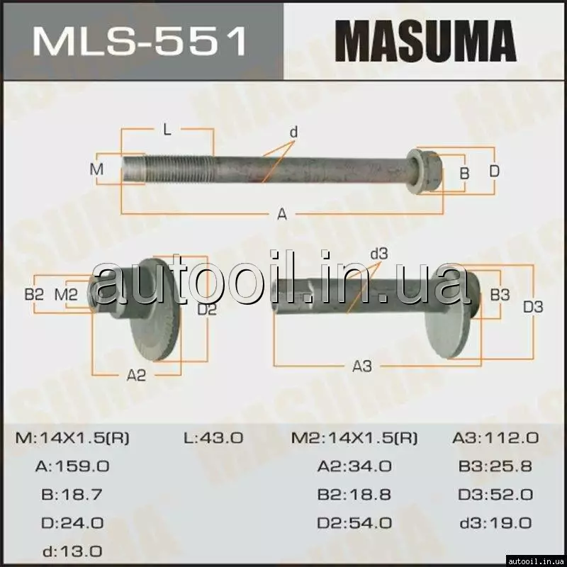 Болт розвальний Toyota FJ Cruiser Land Cruiser Prado 02-09 MLS-551 MASUMA MLS551 MASUMA