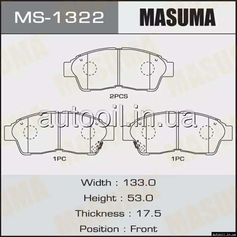 Колодки гальмівні передн Toyota Camry -00 RAV 4 -00 MS-1322 MASUMA MS1322 MASUMA