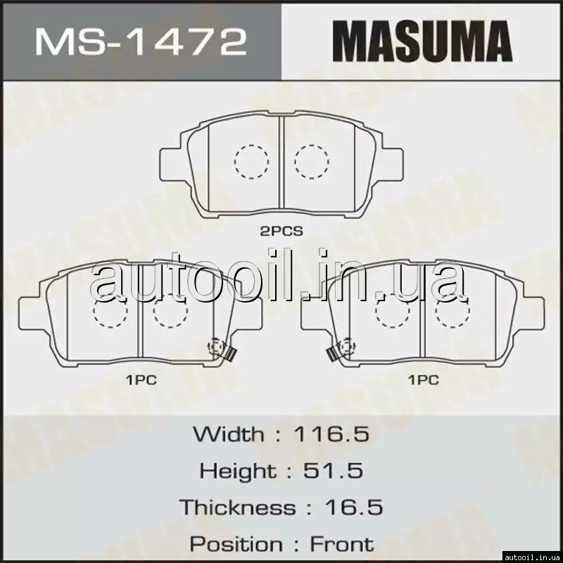 Колодки гальмівні передн Toyota Corolla 00-06 Prius 00-11 Yaris 01-05 MS-1472 MASUMA MS1472 MASUMA