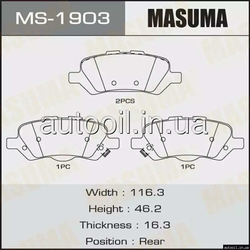 Колодки гальмівні задн Toyota Venza 09-16 MS-1903 MASUMA MS1903 MASUMA