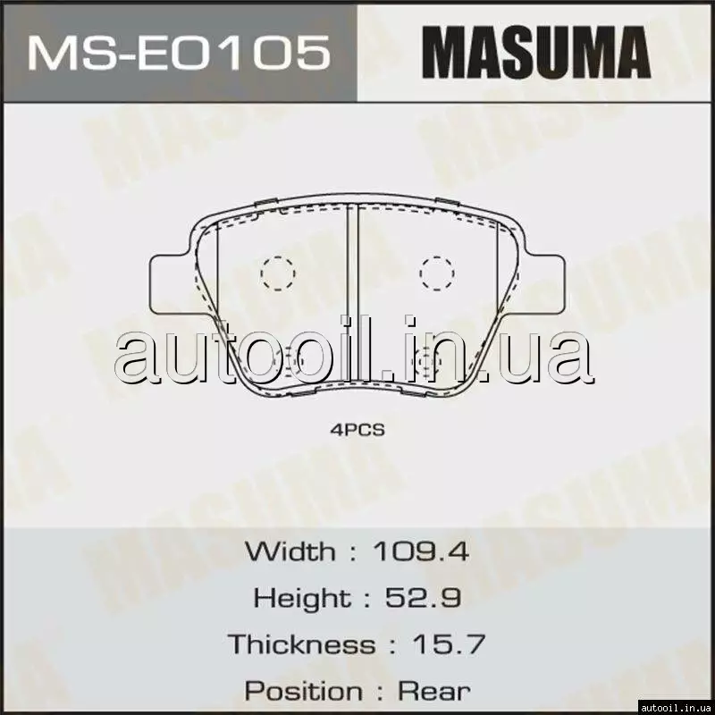 Колодки гальмівні MS-E0105 MASUMA MSE0105 MASUMA